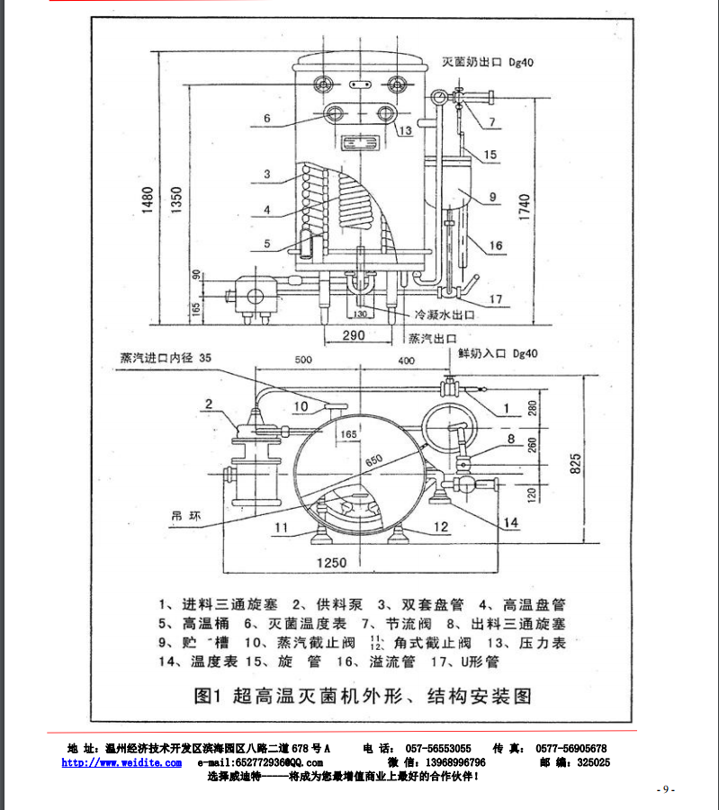 滅菌機與物料接觸部分,都采用不銹鋼制造,雙套盤管用專用機床加工,同心度高。內(nèi)表面光潔,從而使液料通過雙套盤管時形成均勻的液層,加熱十分均勻。