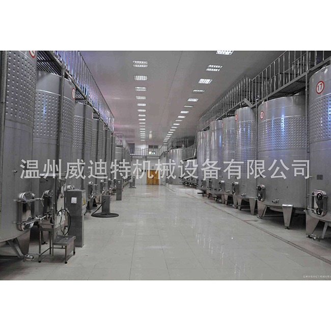 不銹鋼葡萄酒制冷發(fā)酵罐在其外壁的上部中部裝有冷卻套(熱交換器),以使冷卻液在該套中循環(huán),該罐壁用作冷卻的熱交換表面。它在外套中流動。為了通過使外套中的冷卻液湍流來增強熱交換效果,將外套的表面點蝕或在外套上設置螺旋引導板。夾套型冷卻區(qū)與內(nèi)部冷卻型相比具有較低的熱交換效率,允許均勻的熱交換,克服了內(nèi)部冷卻型的各種缺點,并且在實際生產(chǎn)中被廣泛使用。