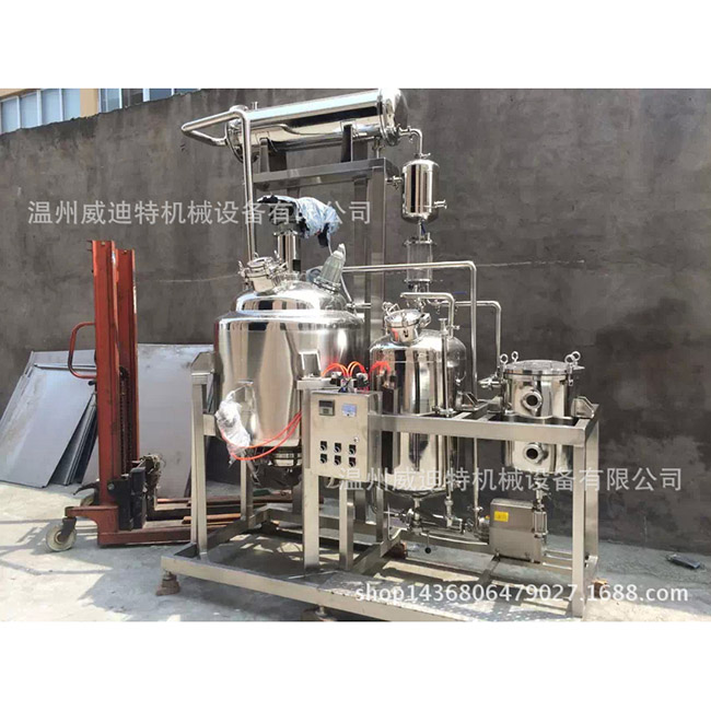 植物提取罐將準(zhǔn)備好的處方藥放入提取罐,在一定時(shí)間內(nèi)一次浸泡5-10倍(根據(jù)溶劑性質(zhì)和工藝要求而定的藥品量),然后打開(kāi)蒸汽閥加熱并常用的夾套加熱,在沸騰并提取一定時(shí)間后(僅在用水提取芳香油時(shí)才進(jìn)行直接蒸汽加熱),從提取槽底部提取的熱提取物可以通過(guò)過(guò)濾器屏幕連續(xù)過(guò)濾到過(guò)濾器。輸入集中器。在濃縮過(guò)程中產(chǎn)生的蒸汽進(jìn)入冷凝器,成為冷凝液,并作為新的溶劑噴入萃取罐。