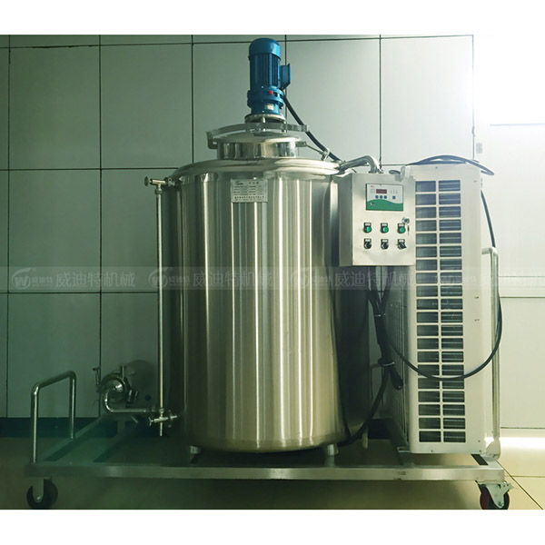 立式制冷罐設備結(jié)構(gòu):主要由罐體、攪拌器、制冷機組、電氣控制等幾部分組成。立式制冷罐罐體采用雙層不銹鋼制成,經(jīng)精密拋光處理,污垢不易積存,易清洗耐腐蝕。在內(nèi)外罐體之間采用了聚胺酯硬質(zhì)泡沫板,該材料具有導熱系數(shù)低、比重輕、強度高、吸水率低的保溫層,保溫性能好。立式制冷罐設計、制造技術先進、性能可靠,冷卻、保溫性能和衛(wèi)生標準均符合國際先進水平。